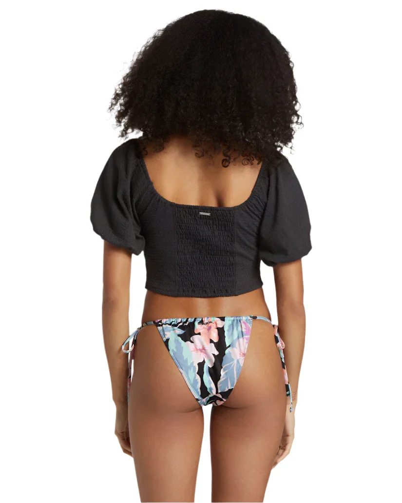 The Posy chic puff-sleeved crop top boasts a sweetheart neckline and smocked panel at the back for a flirty, fun look. Crafted from a lightweight cotton and polyester blend jacquard fabric, it features princess seams and a tunneled front tie for a figure-flattering fit.