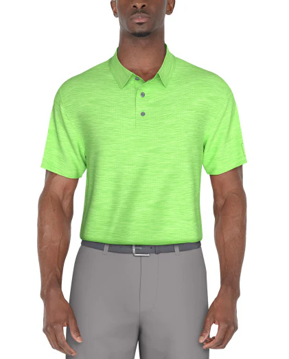 Great for golfing in warm and humid weather, this PGA TOUR Apparel polo shirt is crafted from a lightweight single knit fabric and features innovative Airflux ventilation to help keep you cool. Moisture wicking helps to manage sweat so you can stay comfortable, dry and focused on your game. The golf polo shirt is topped with a self fabric collar for a unified look and machine washable for easy care. Featuring a clean, classic design, this men’s golf top transitions smoothly from a competitive round to a casual lunch date.