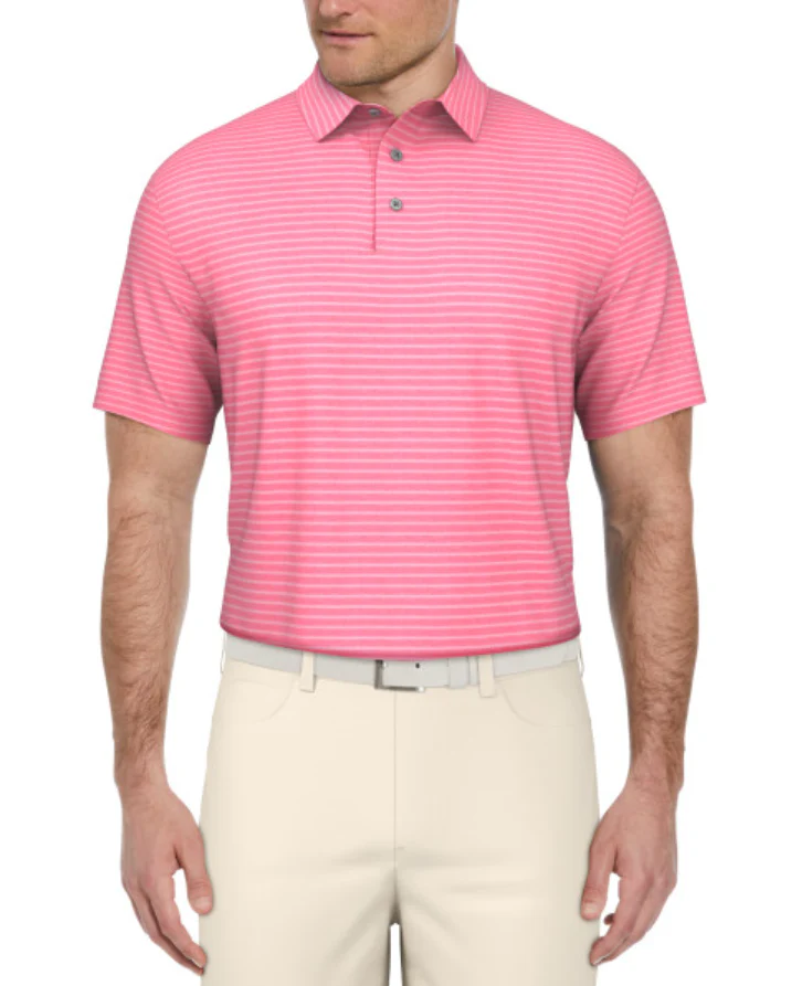 PGA Tour Heather Feeder Stripe Golf Short Sleeve Polo Shirt